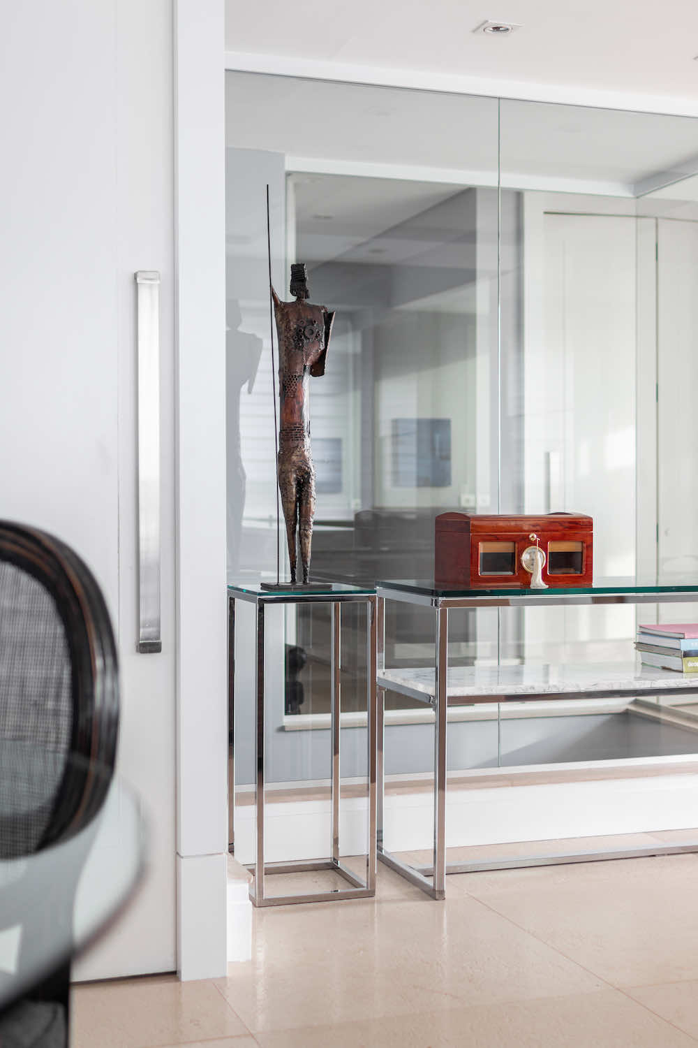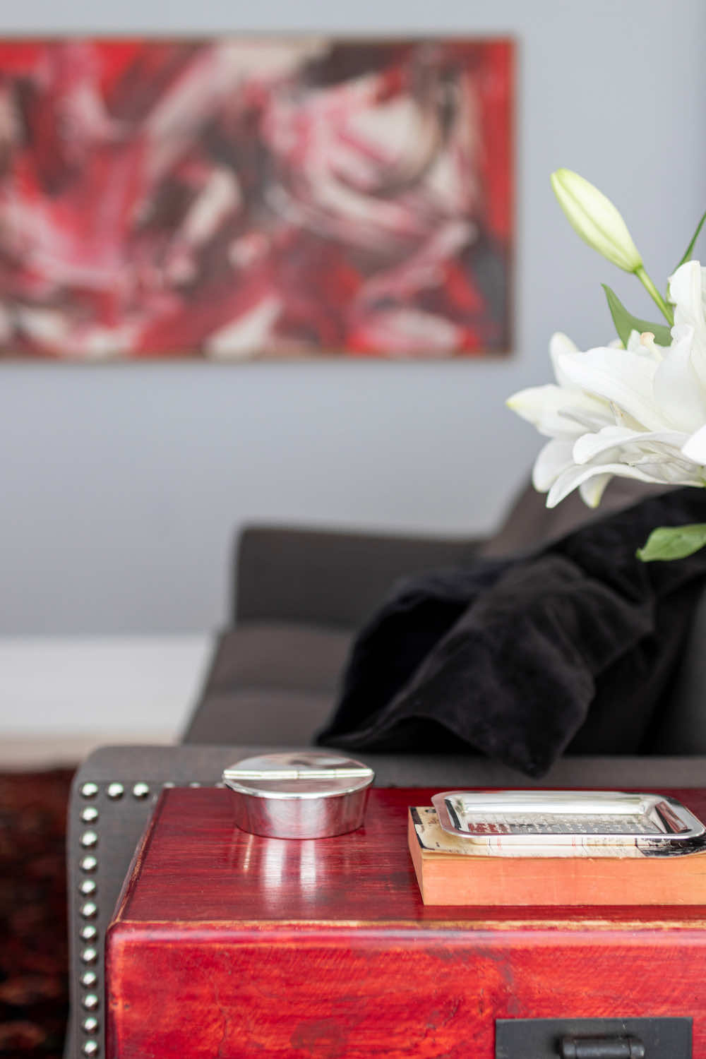 O trabalho do projeto Charlie se iniciou antes da mudança do casal, catalogando todo o seu acervo de móveis e obras de artes. Como o apartamento era um espaço transitório na vida dos clientes, não houve compra de novos materiais ou objetos. Portanto, foi realizada uma redistribuição e adequação dos itens que já existiam dentro do novo espaço alugado, que poderia receber apenas intervenções mínimas - como, por exemplo, a inserção de lustres e tecidos nas paredes.