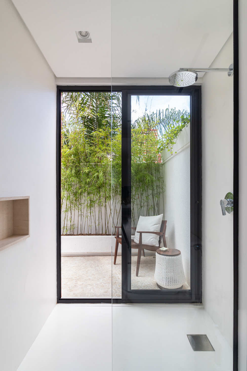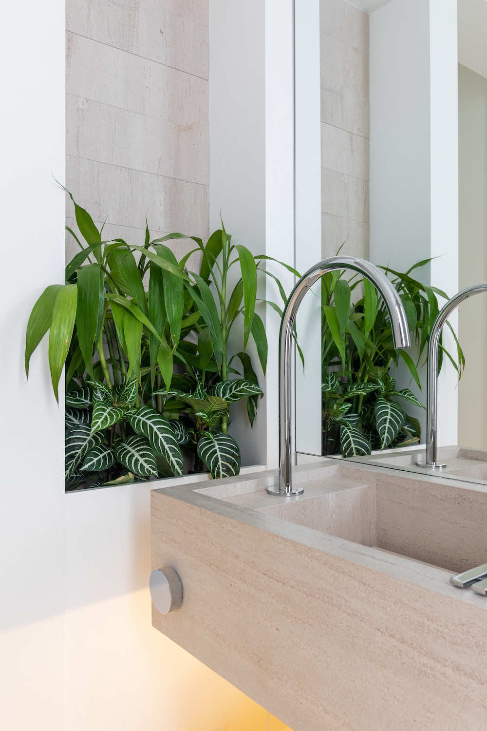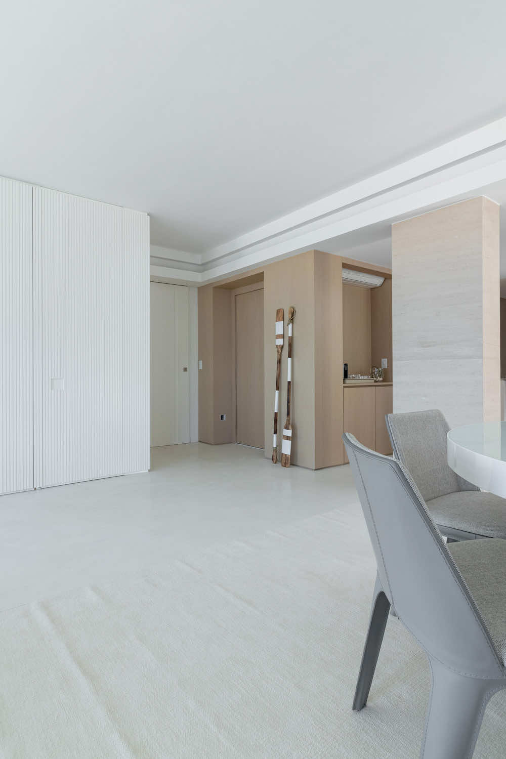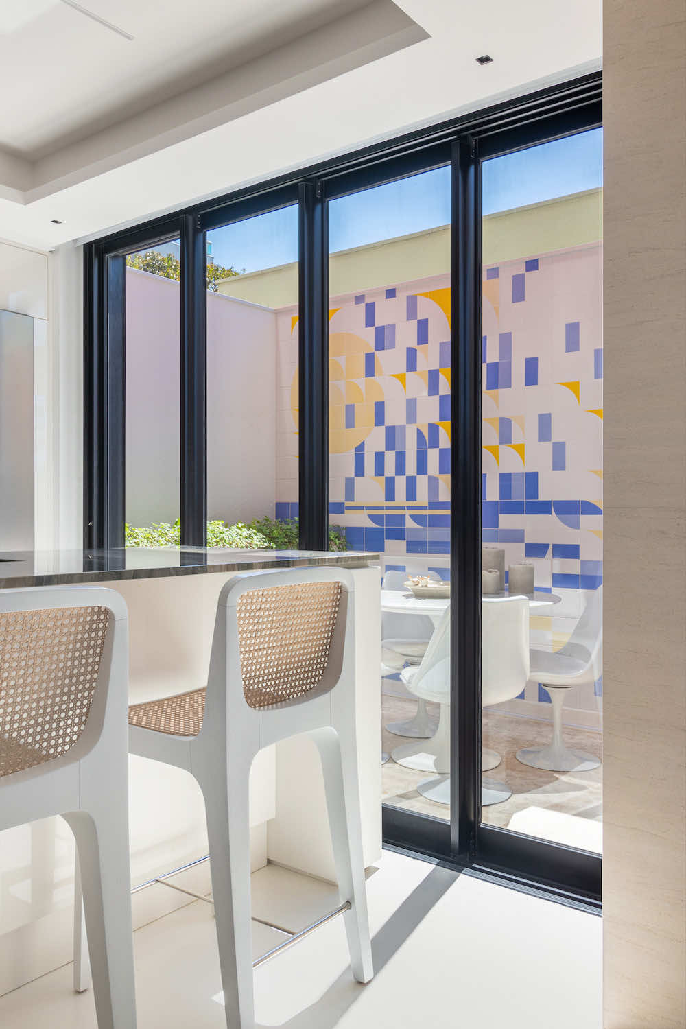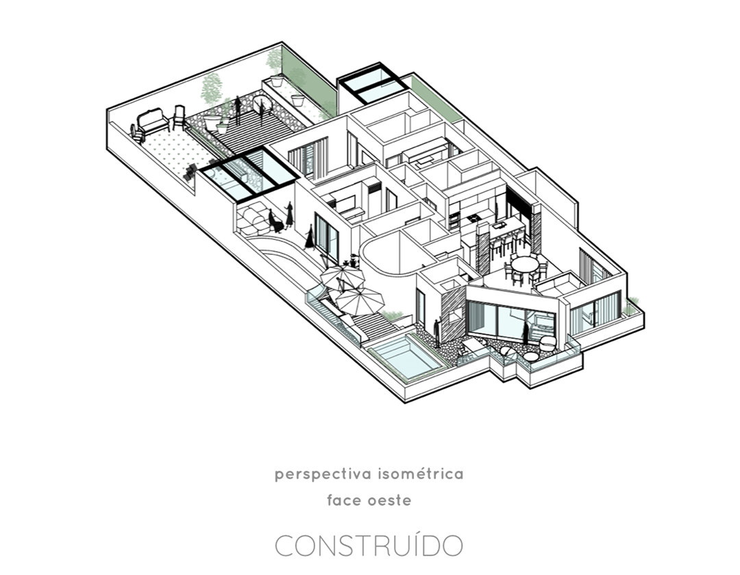 Em apenas 7 meses, o ambiente foi completamente reformado, havendo a troca de esquadrias, elétrica, hidráulica e sistema de gás. Os quatro quartos também se tornaram apenas duas grandes suítes com closet. Foram utilizadas diferentes texturas e tons de branco, além de mobiliário assinado por designers renomados.