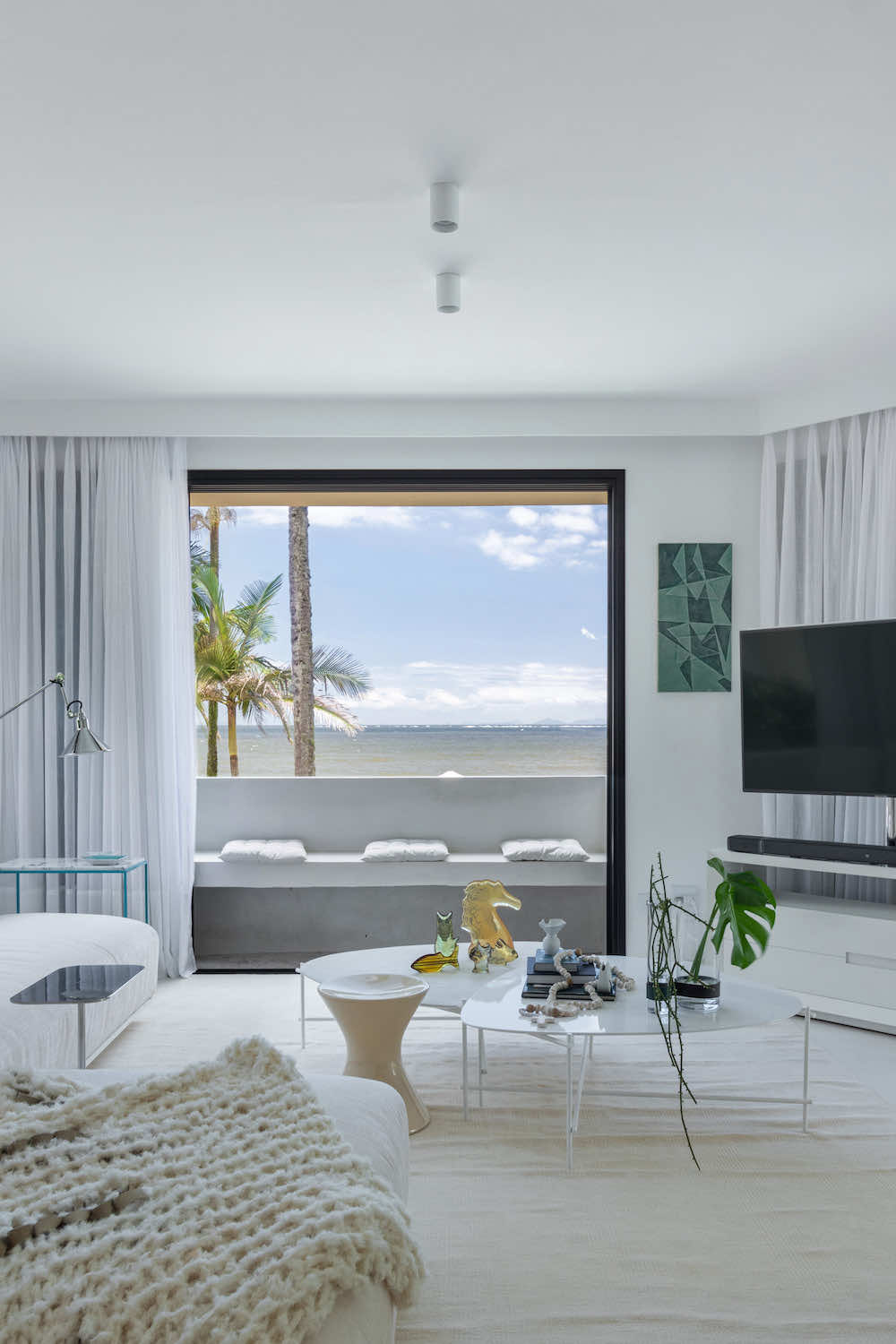 A vivência de um casal em viagens pelo mundo foi o ponto de partida para transformar um imóvel do início dos anos 90, em Caiobá. A arquitetura observada na Grécia serviu como inspiração para levar traços mais contemporâneos e despojados a este apartamento de veraneio. De frente para o mar, o espaço foi inteiramente pensado para o lazer destas duas pessoas, buscando trazer elementos da paisagem para dentro de casa.