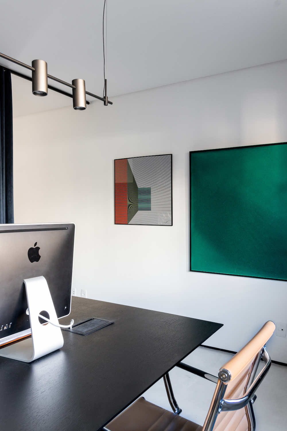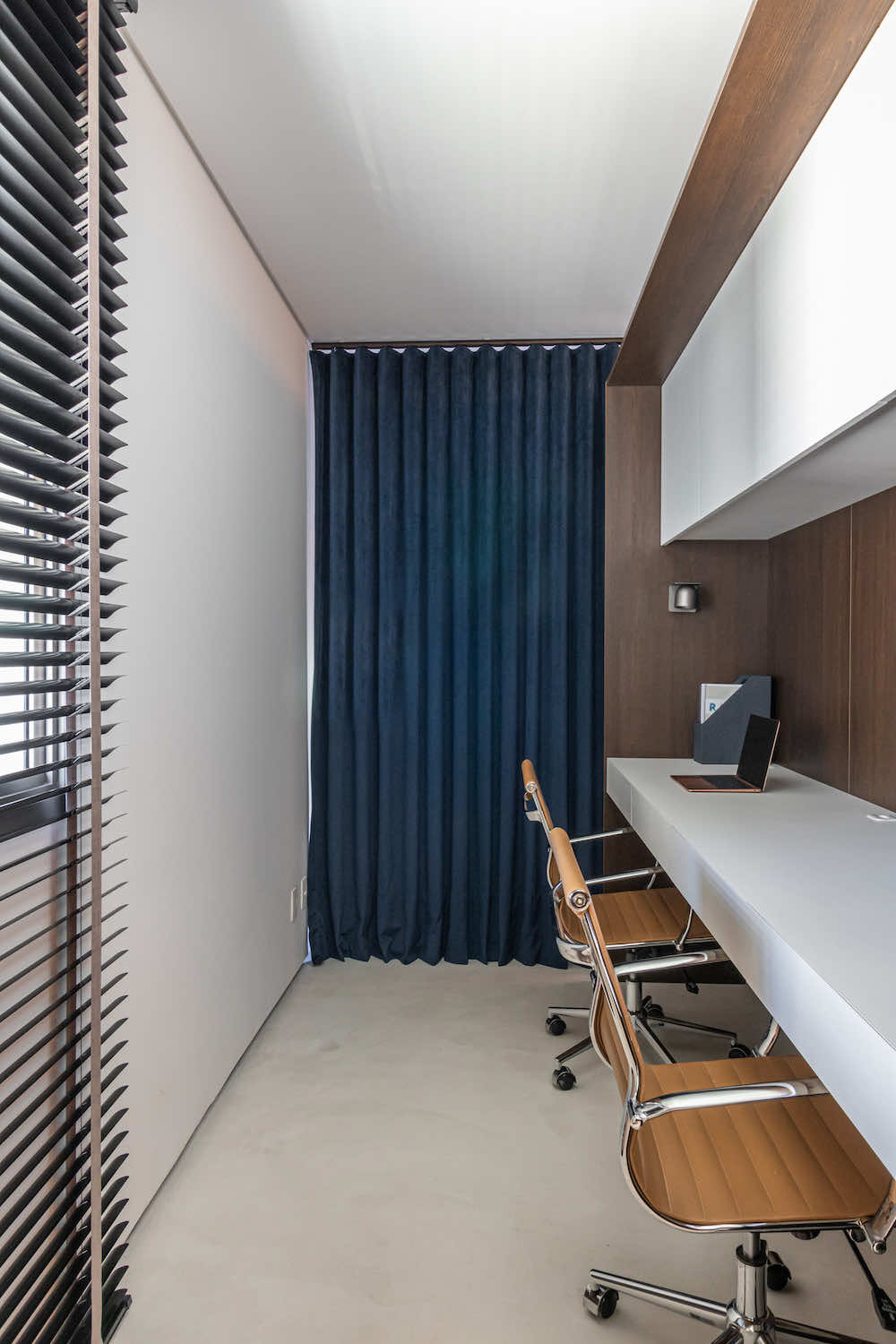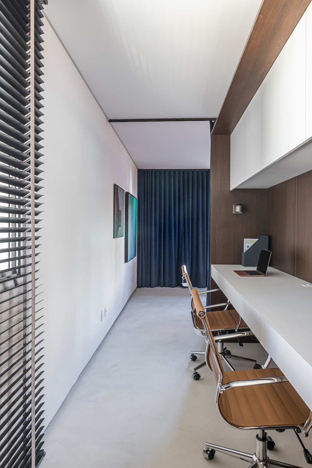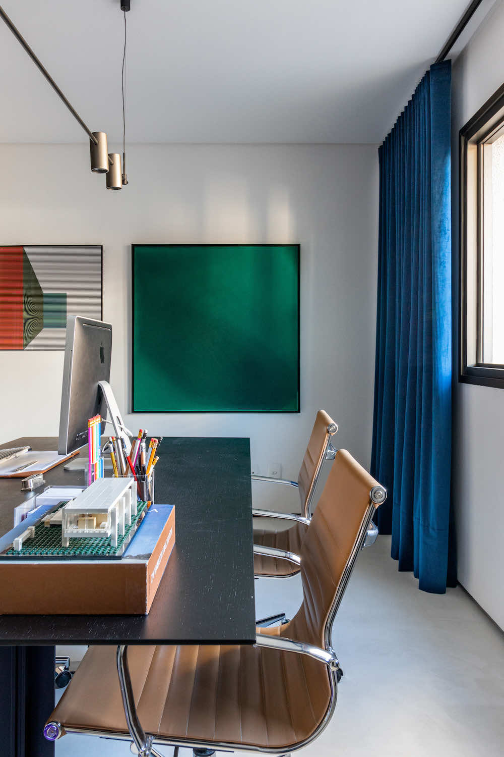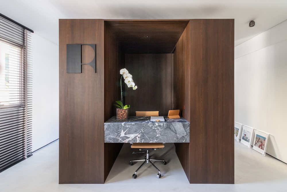 O escritório do arquiteto Rodolfo Fontana. A ideia é deixar à vista uma amostra do que podemos levar aos clientes: Este know-how de elementos tradicionais com uma arquitetura contemporânea e minimalista.