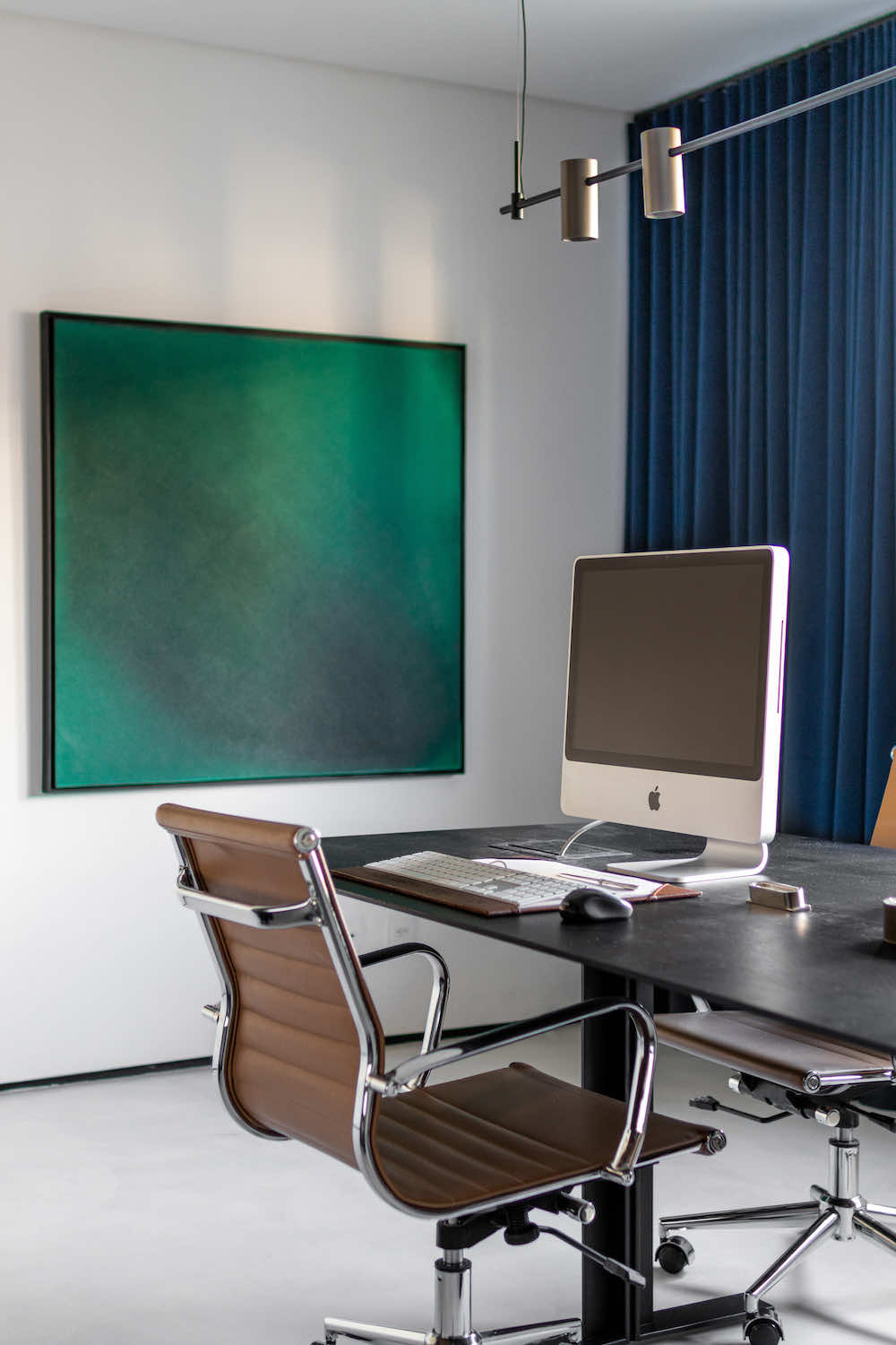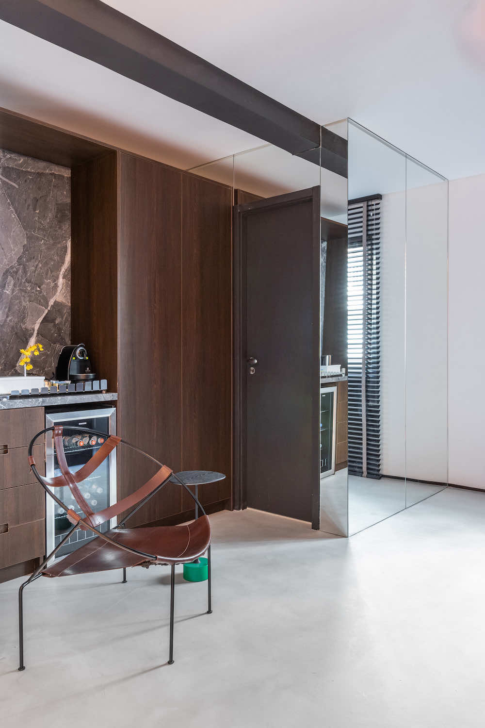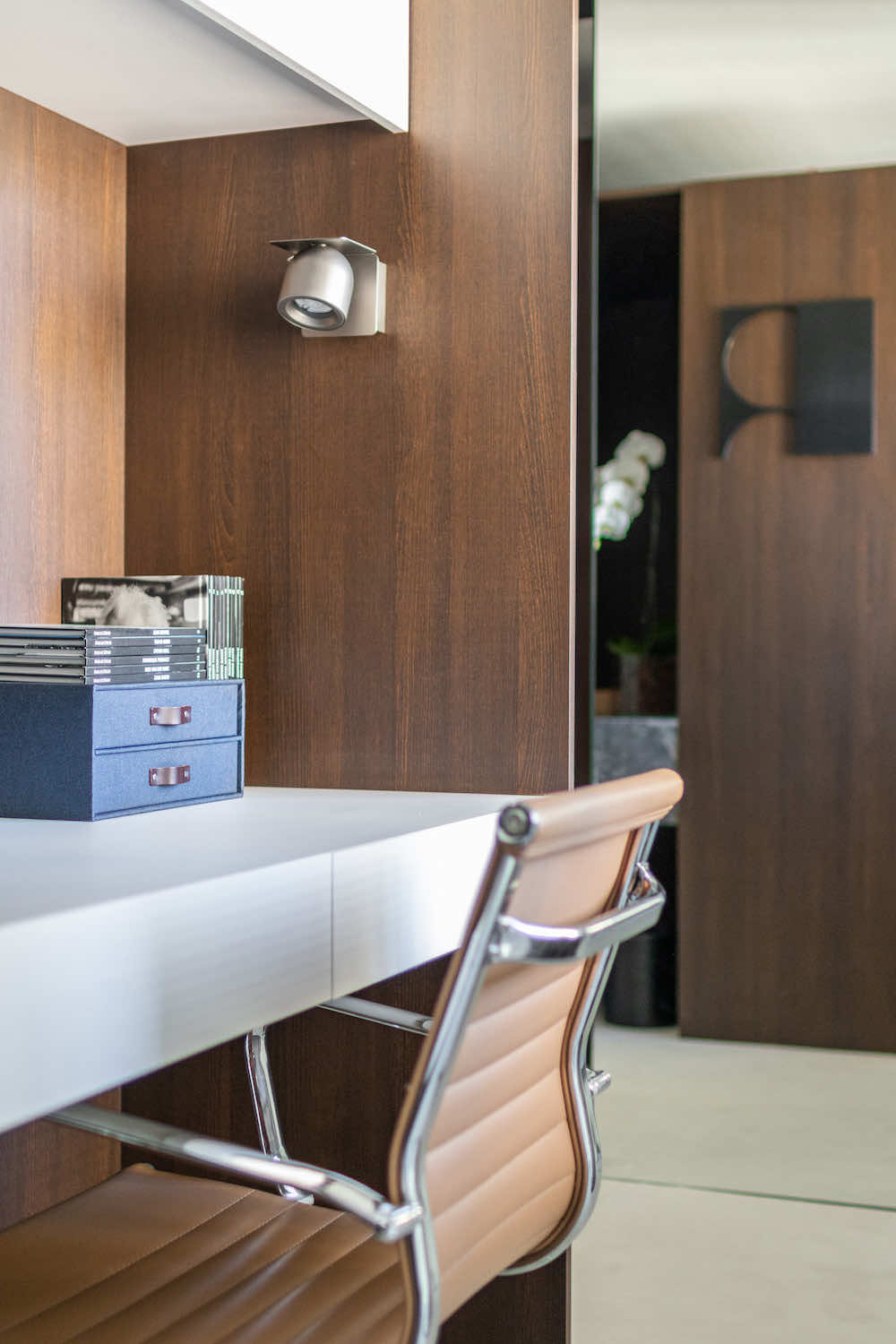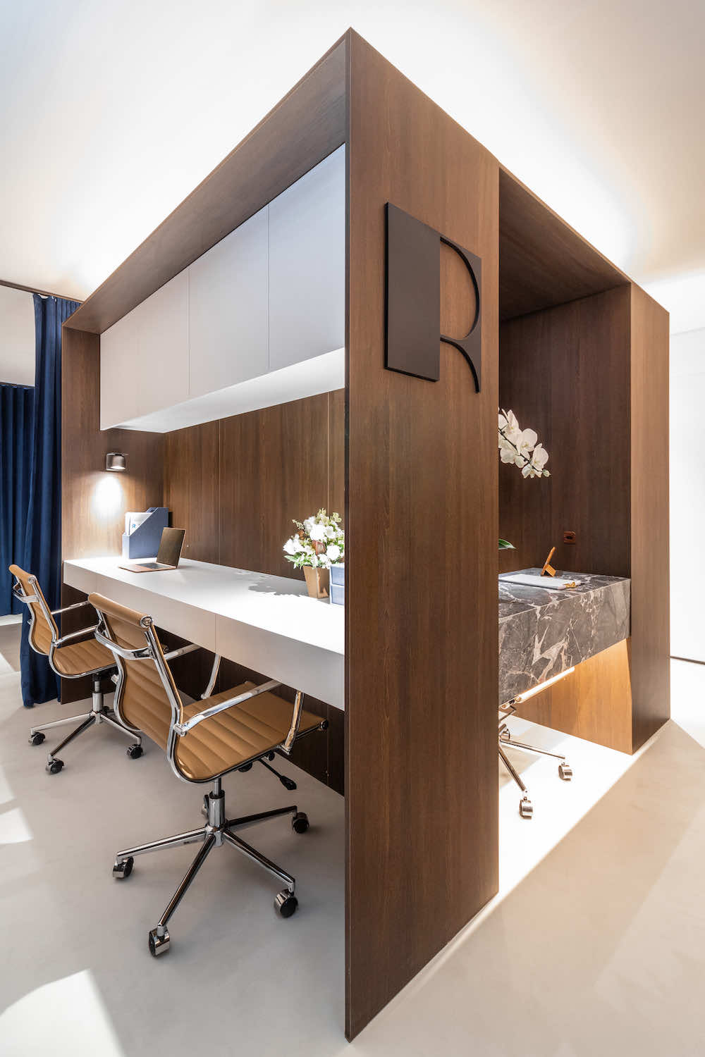 O escritório do arquiteto Rodolfo Fontana. A ideia é deixar à vista uma amostra do que podemos levar aos clientes: Este know-how de elementos tradicionais com uma arquitetura contemporânea e minimalista.