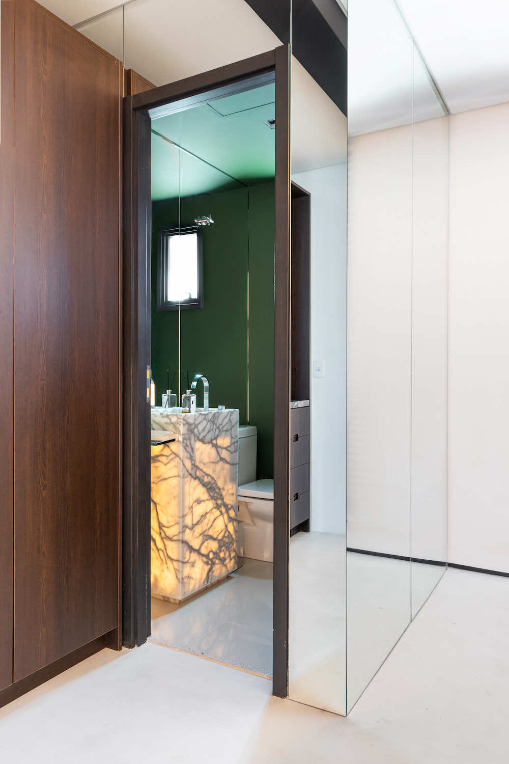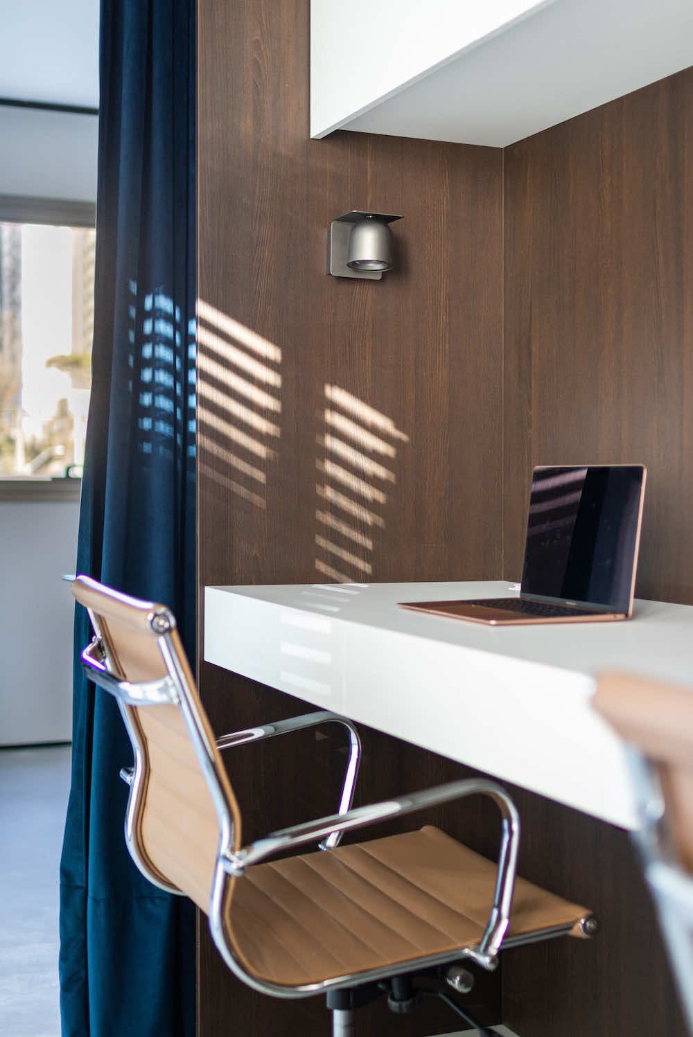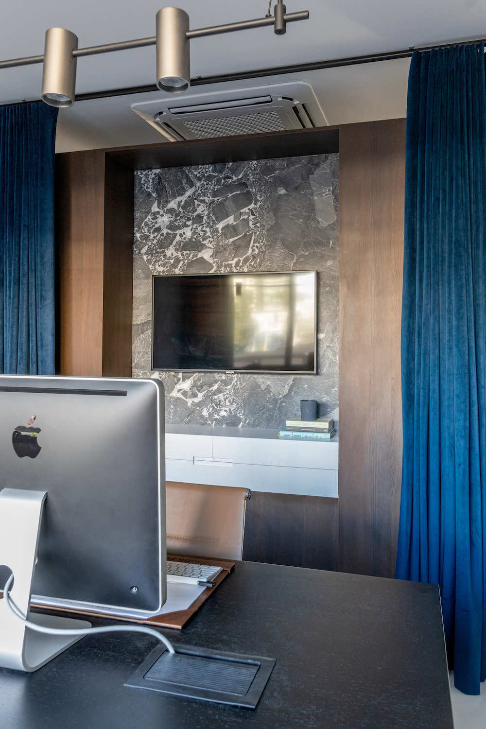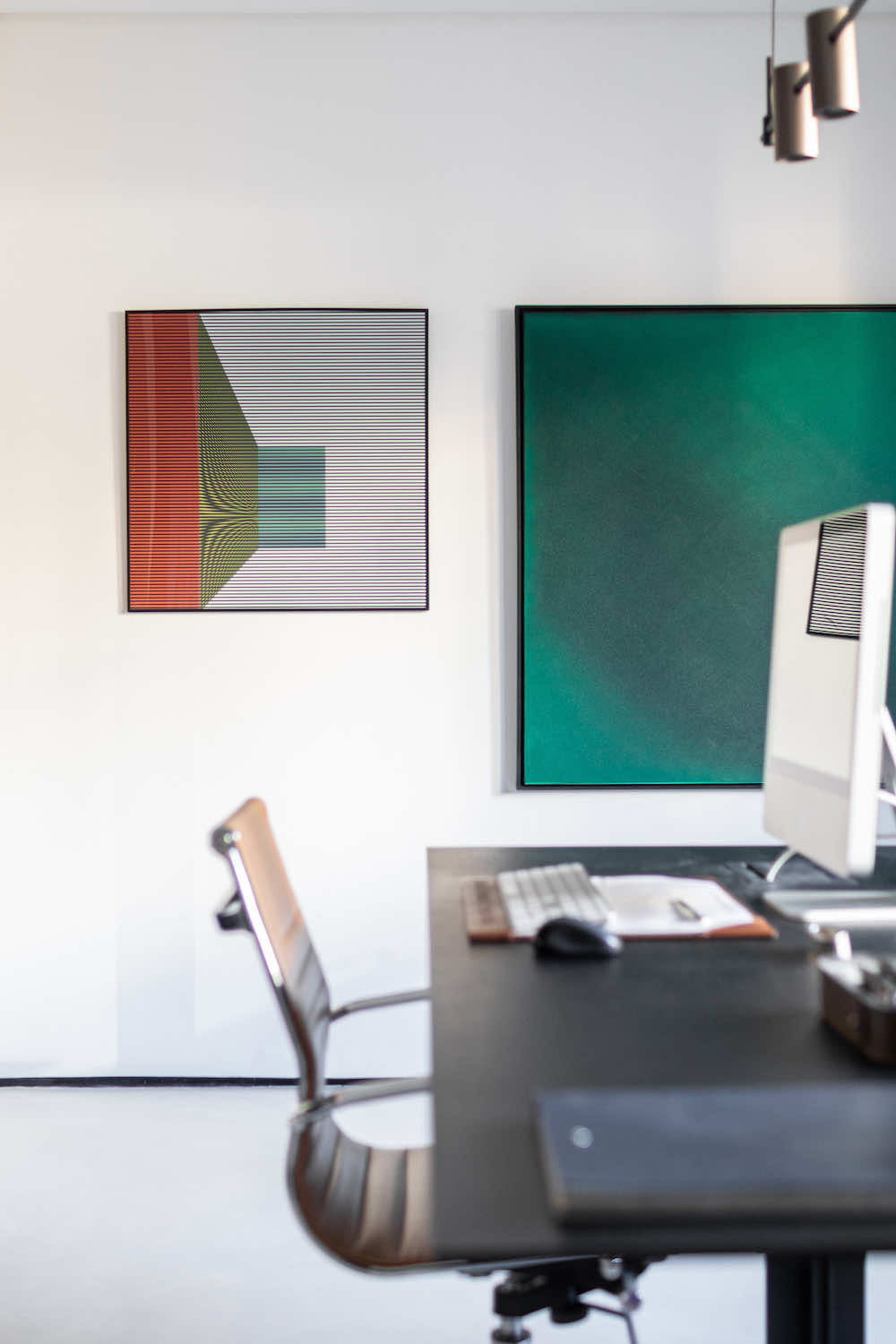 O escritório do arquiteto Rodolfo Fontana. A ideia é deixar à vista uma amostra do que podemos levar aos clientes: Este know-how de elementos tradicionais com uma arquitetura contemporânea e minimalista.
