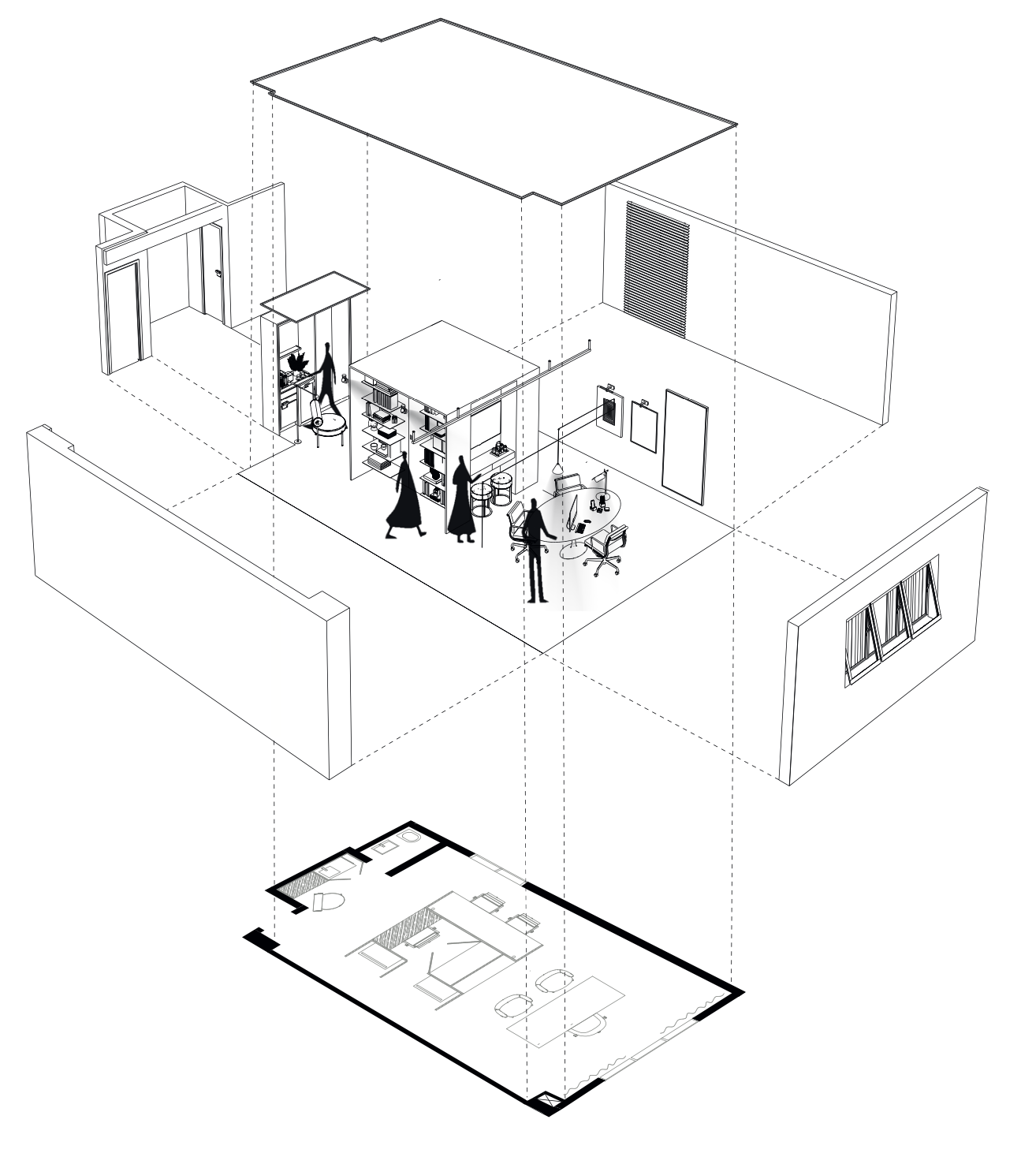 A arquitetura tem que ser pensada como transição do tempo. Muitas vezes, precisa ser planejada de forma efêmera. Pensando nisso, a estrutura do escritório foi pensada para ser desmontada e montada novamente em outro lugar, quando necessário.