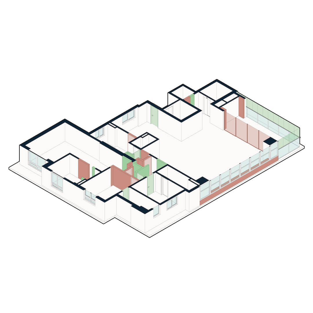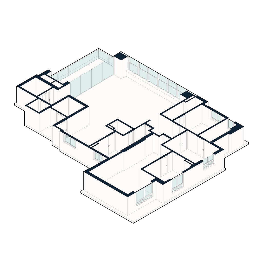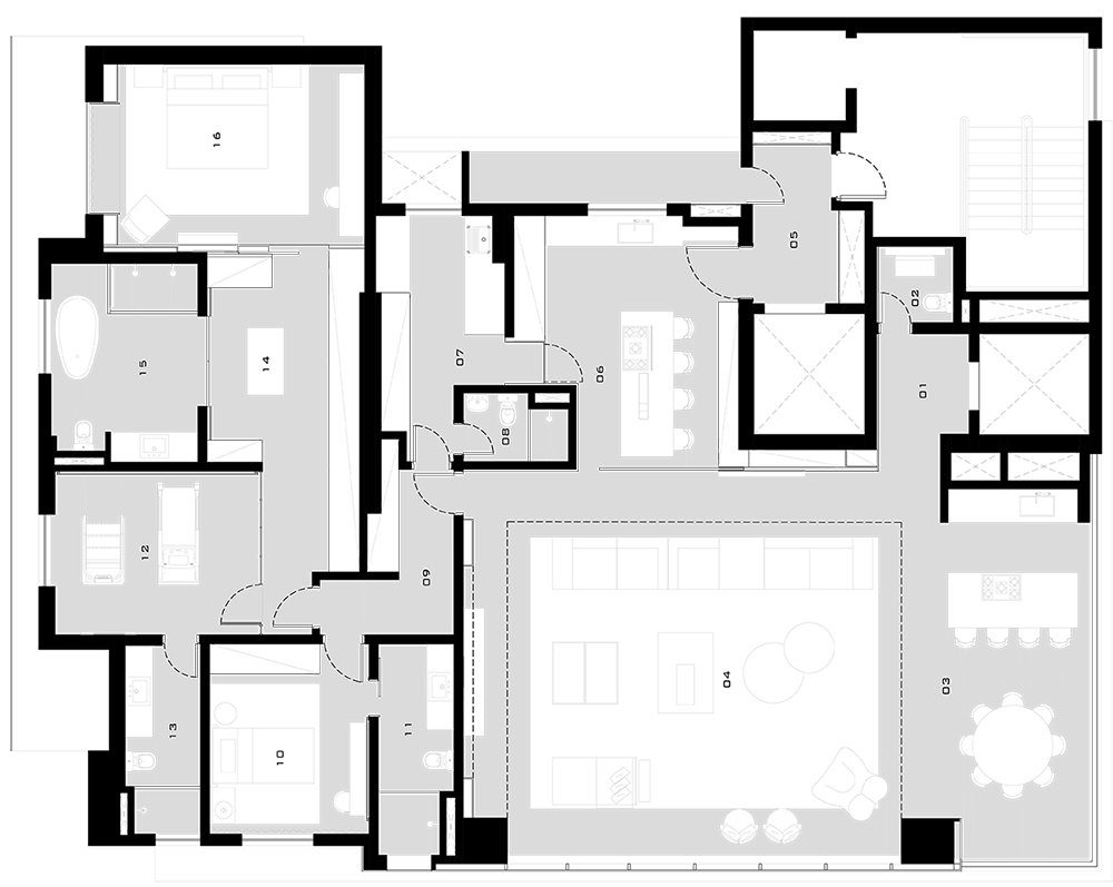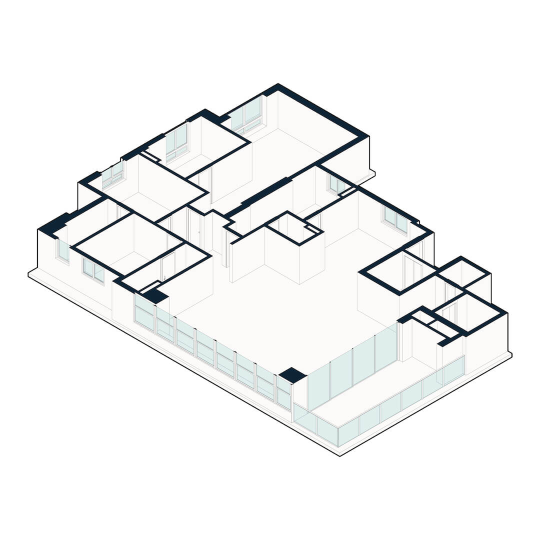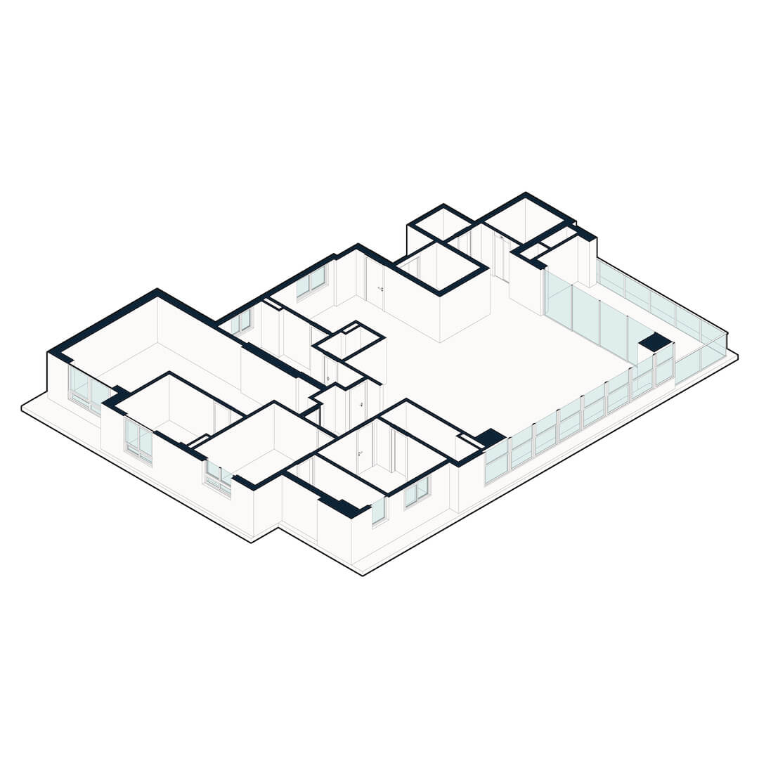 Os quatro quartos se transformaram em 2 grandes suítes e uma academia de ginástica, onde o morador pode praticar yoga e outras atividades de bem-estar. Para dar a percepção de amplitude, foi fechada a varanda e integrados todos os espaços sociais.