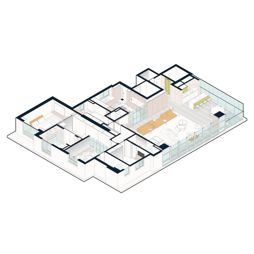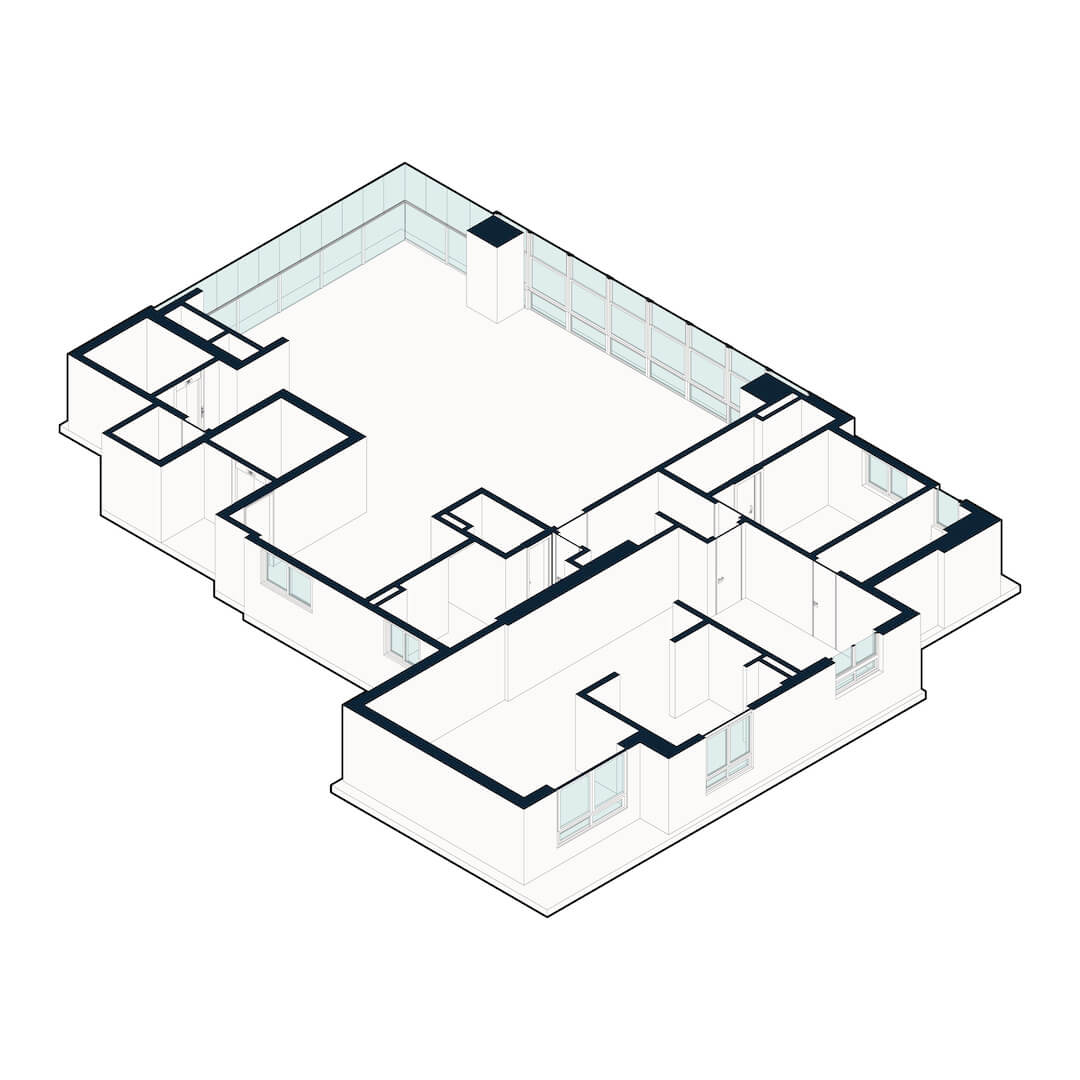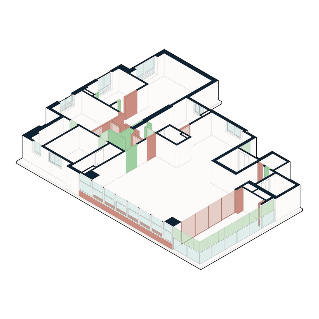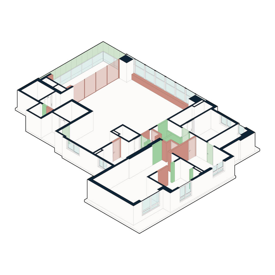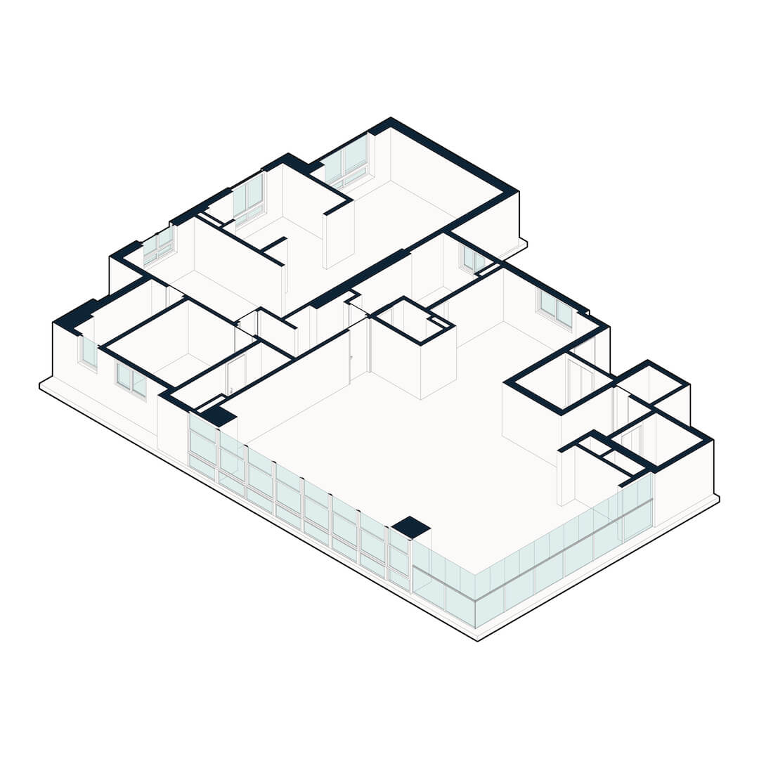 Os quatro quartos se transformaram em 2 grandes suítes e uma academia de ginástica, onde o morador pode praticar yoga e outras atividades de bem-estar. Para dar a percepção de amplitude, foi fechada a varanda e integrados todos os espaços sociais.
