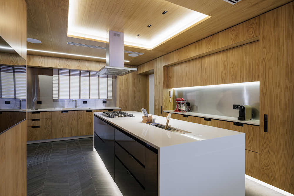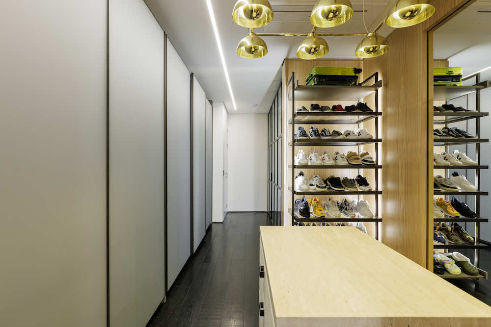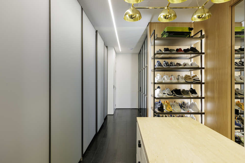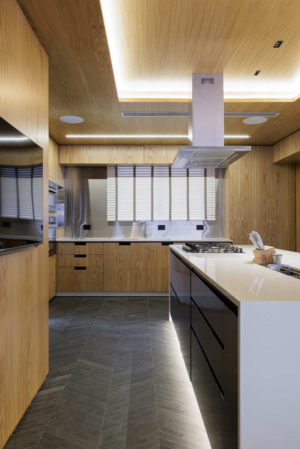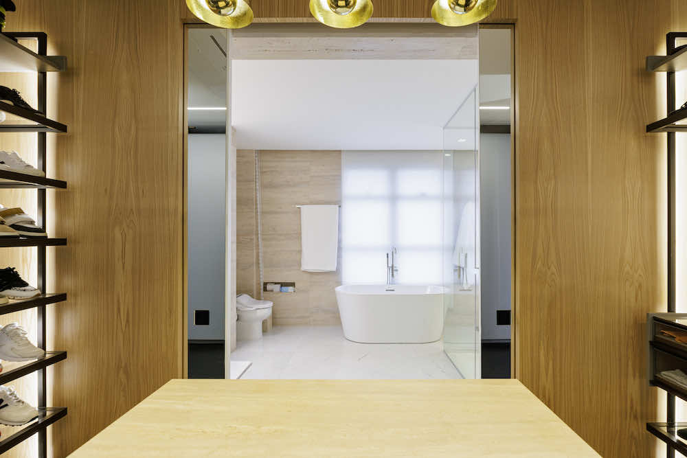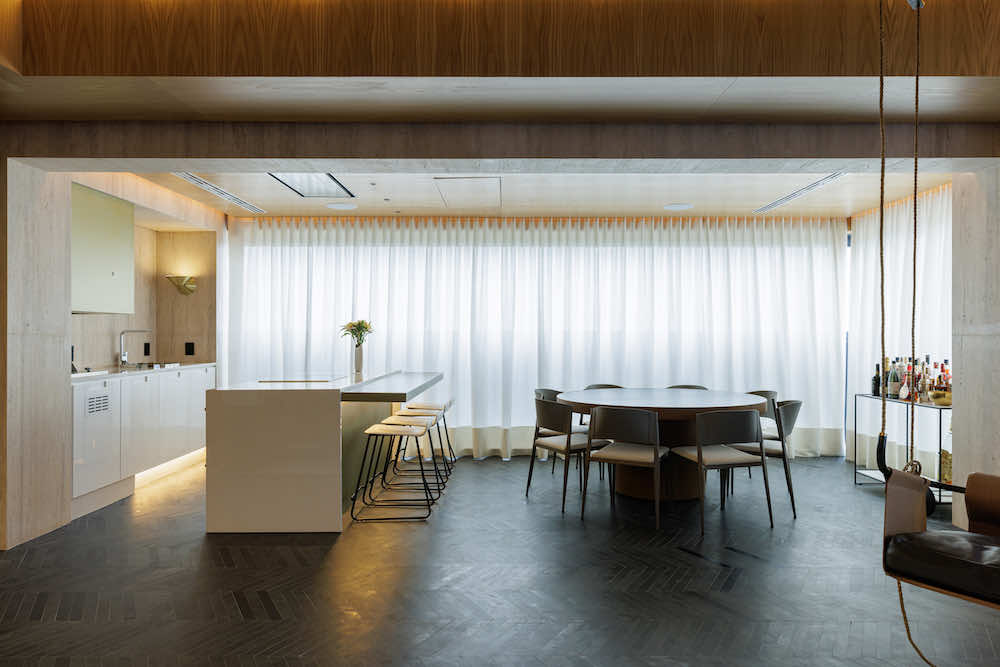 Um apartamento de personalidade. De tons sóbrios, o lugar foi revestido com lâminas de carvalho natural e travertino romano bruto, que é um mármore clássico e atemporal. Também foram usados elementos metálicos variados entre inox escovado, latão escovado e eletrostático preto.