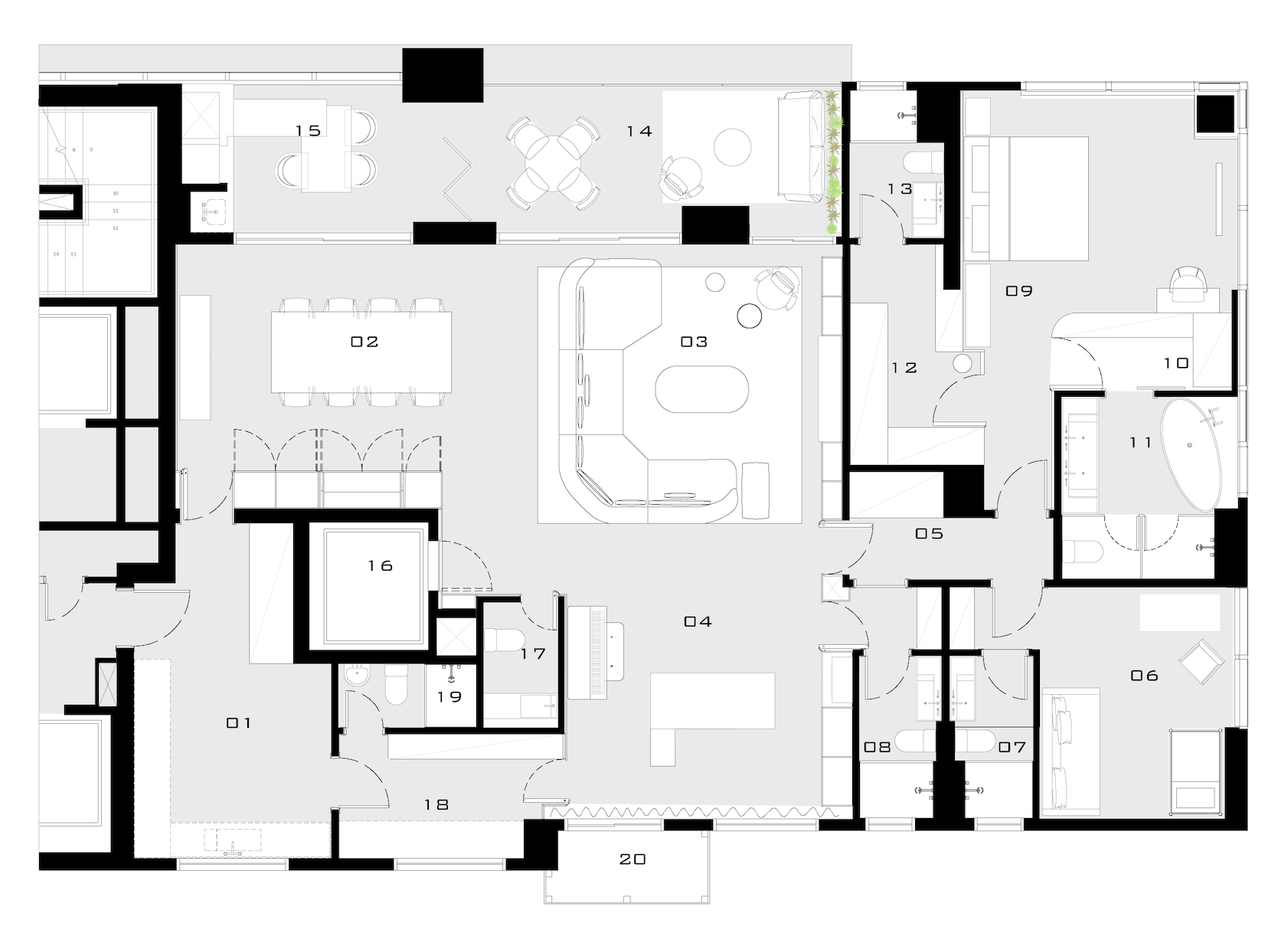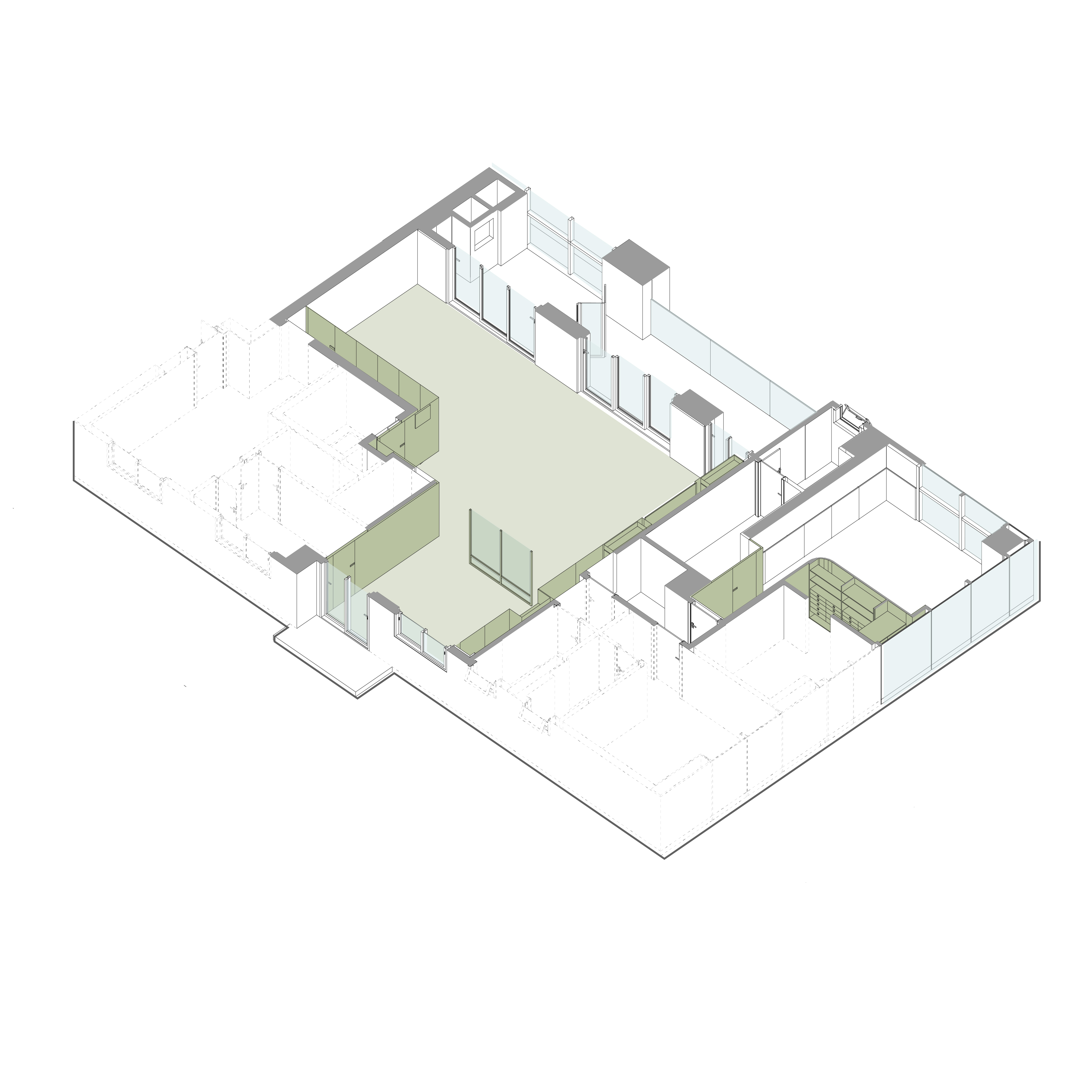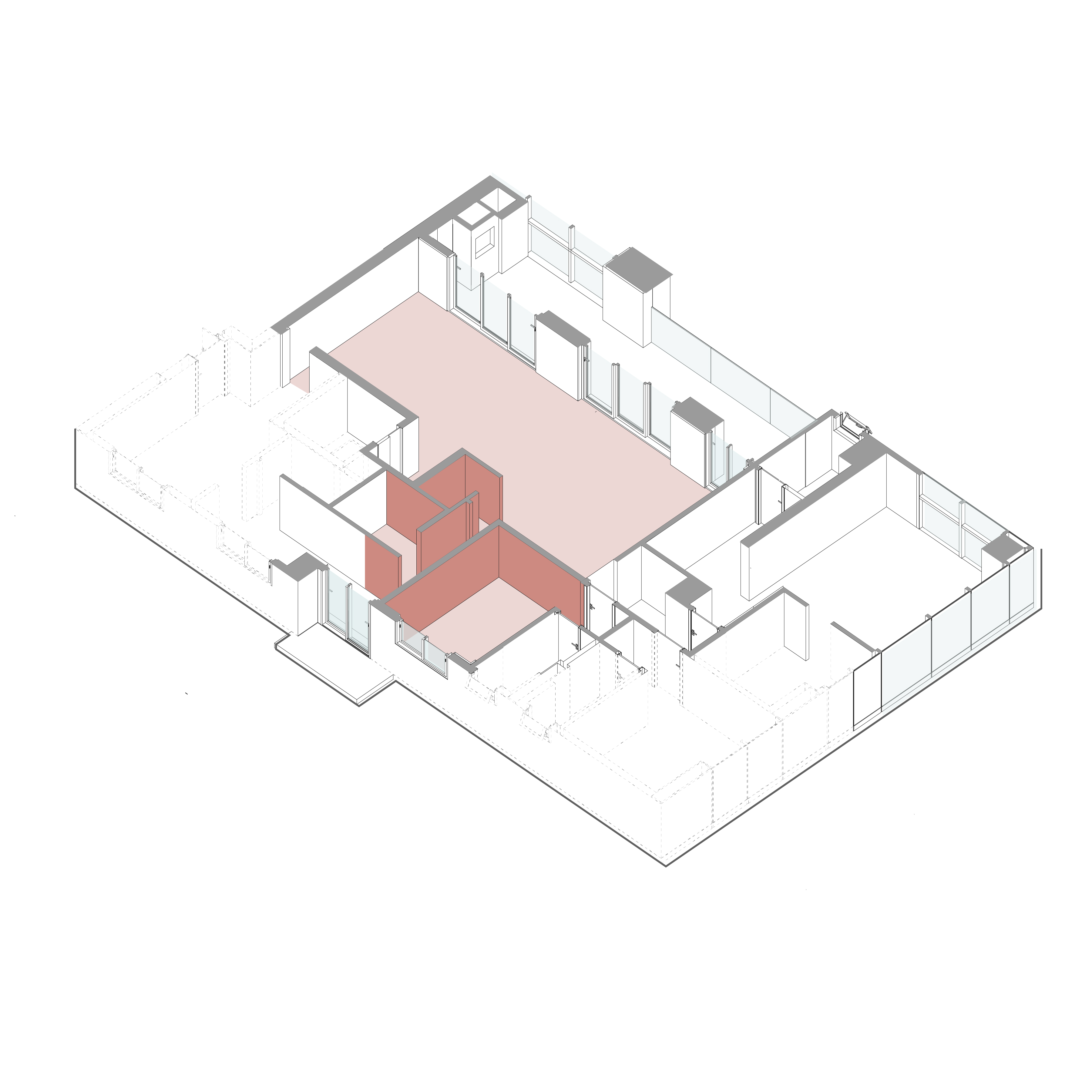 Neste duplex da década 1980, existia uma configuração antiquada em relação às vias de circulação, que acabavam tomando demasiado espaço. Por isso, a renovação desse apartamento envolveu um trabalho cuidadoso referente ao fluxo de pessoas.